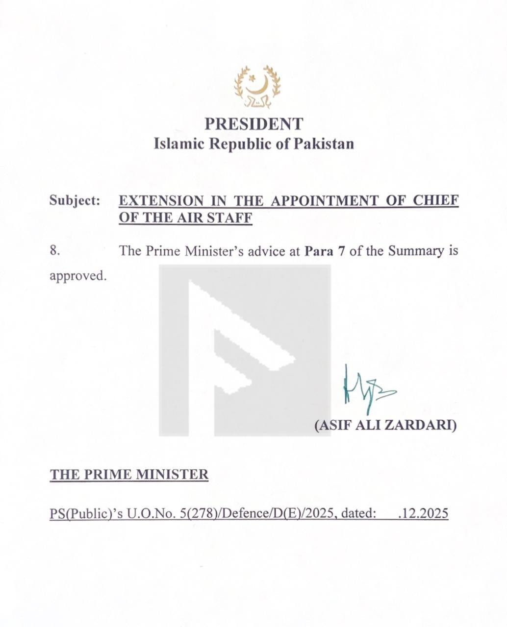 Air Chief Zaheer Babar Sidhu Granted Two-Year Service Extension. A notification has been issued to extend the tenure of Air Chief Marshal Zaheer Ahmad Babar Sidhu, the extension will be effective from March 19, 2026.