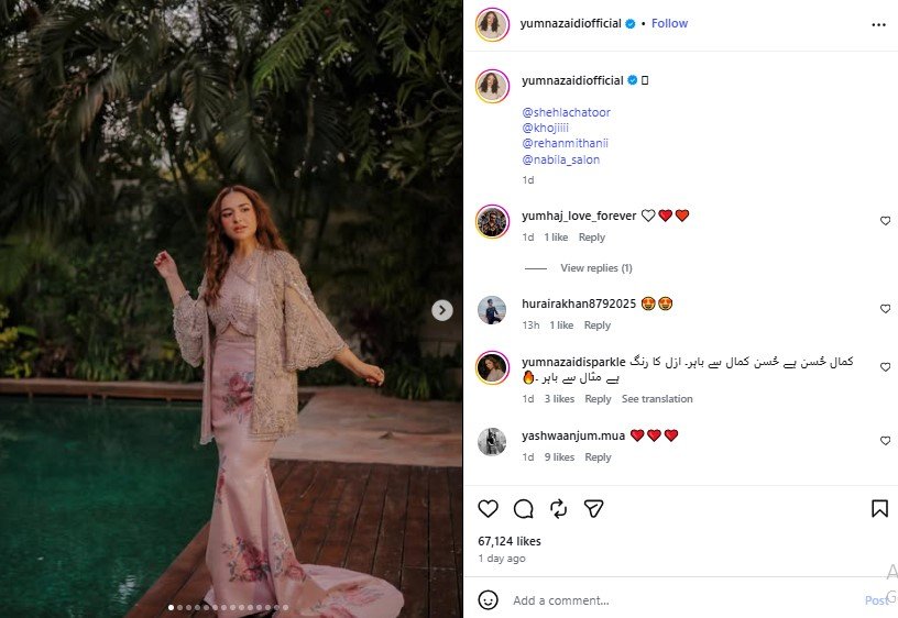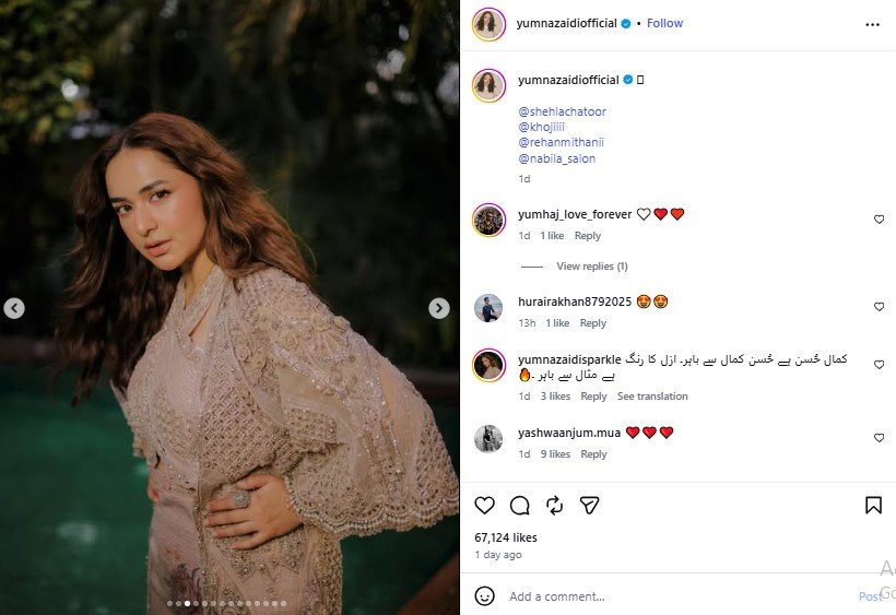 Yumna kept her styling simple and elegant. Her makeup focused on glowing skin and softly defined eyes, allowing the outfit to remain the centre of attention. She wore her hair in loose waves, which added a relaxed and modern touch to the overall appearance.