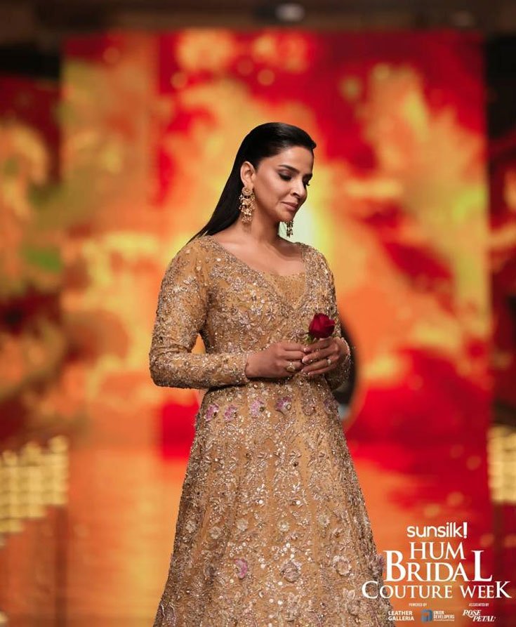 When it was time for her appearance, Saba completely transformed. She wore a beautiful gold outfit that combined traditional bridal style with modern fashion. The dress was richly embroidered with metallic threadwork that shimmered as she moved. She paired it with minimal accessories, keeping the focus on the intricate design and her graceful presence. Fellow actor Iffat Omar even shared her admiration with heart-eye and fire emojis.